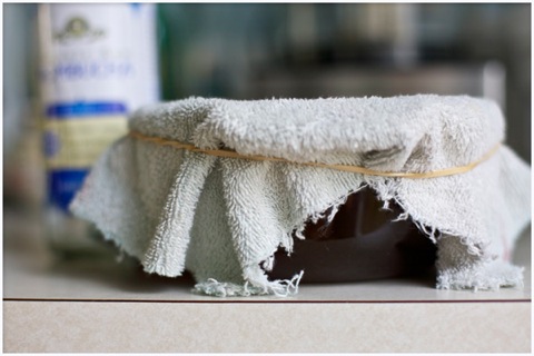 Step 5 Put the bowl in a warm dry place (like atop the fridge) and just forget about it for 2 whole weeks. No fussing or peeking, or you might expose it to germs. Just pretend it’s not there!