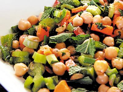 1/2 red pepper, diced •  1 med. tomato, diced •  1 med. onion or 6 green onions, diced •  1 can chickpeas, drained (19oz) •  1/2 cup feta cheese( can be replaced with soy feta) Dressing •  2 tbsp olive oil •  3 tbsp red wine vinegar •  2 tbsp fresh lemon juice (about 1/2 lemon) •  1 tbsp fresh parsley •  1 tsp fresh mint •  1 tbsp & 1 tsp dried ground cumin •  salt & pepper to taste